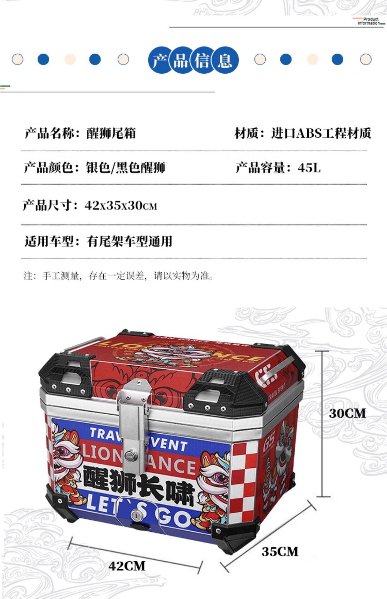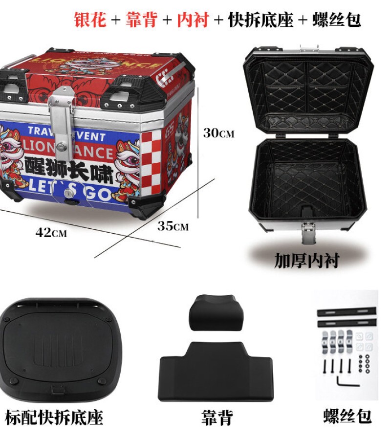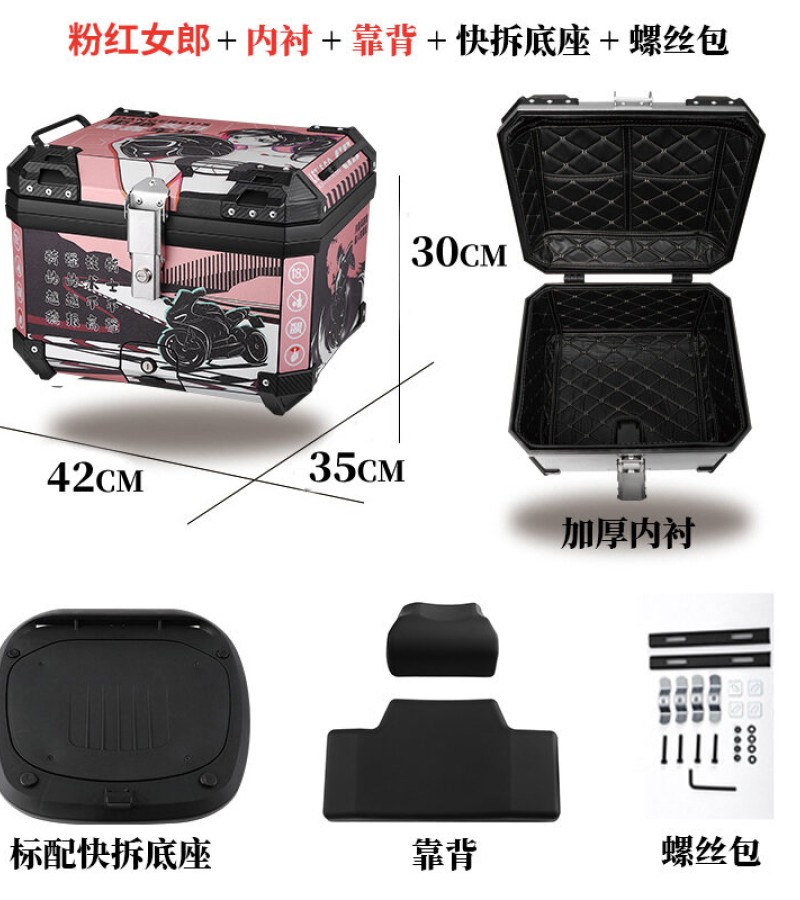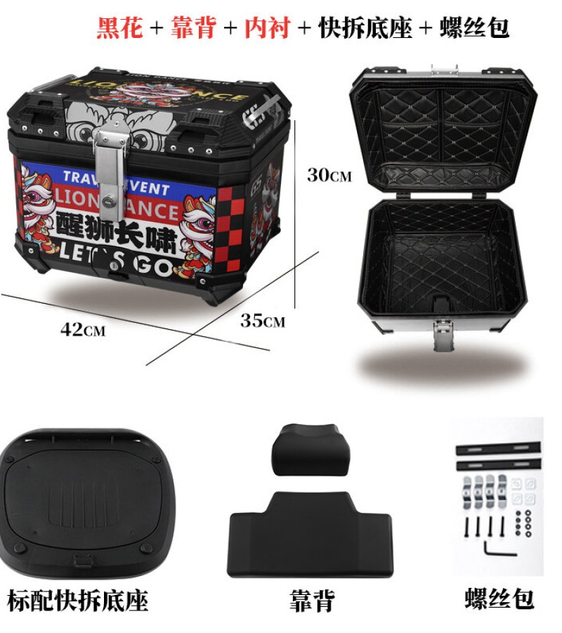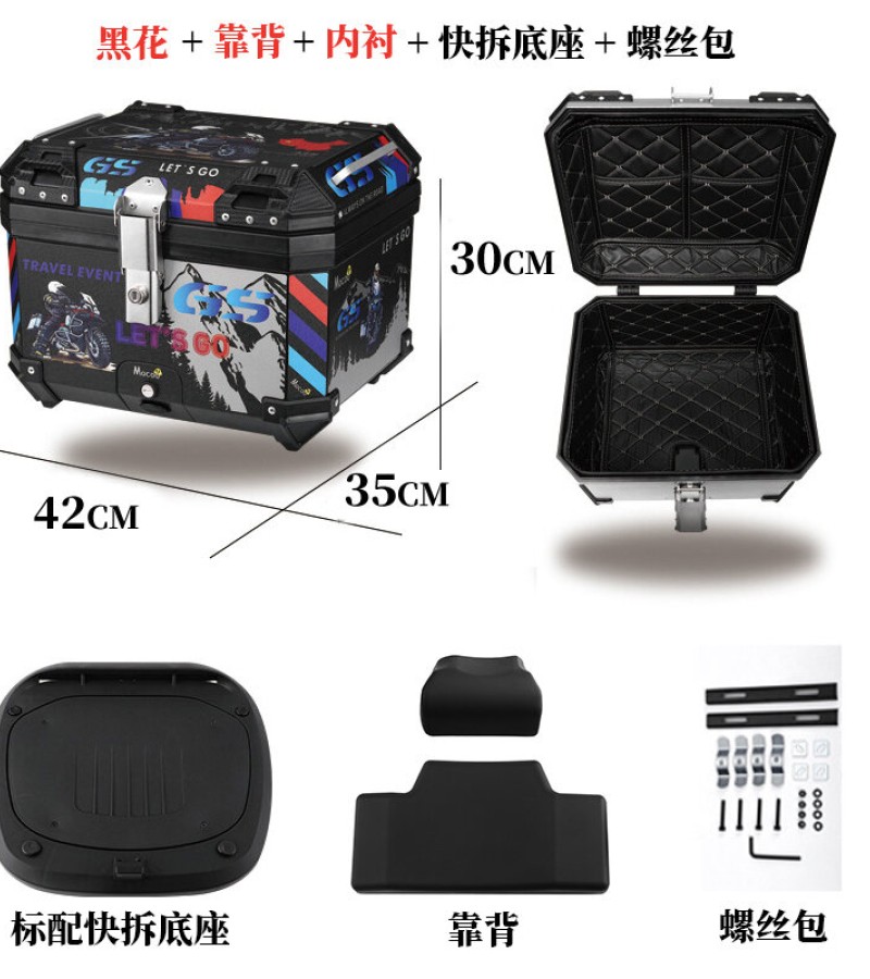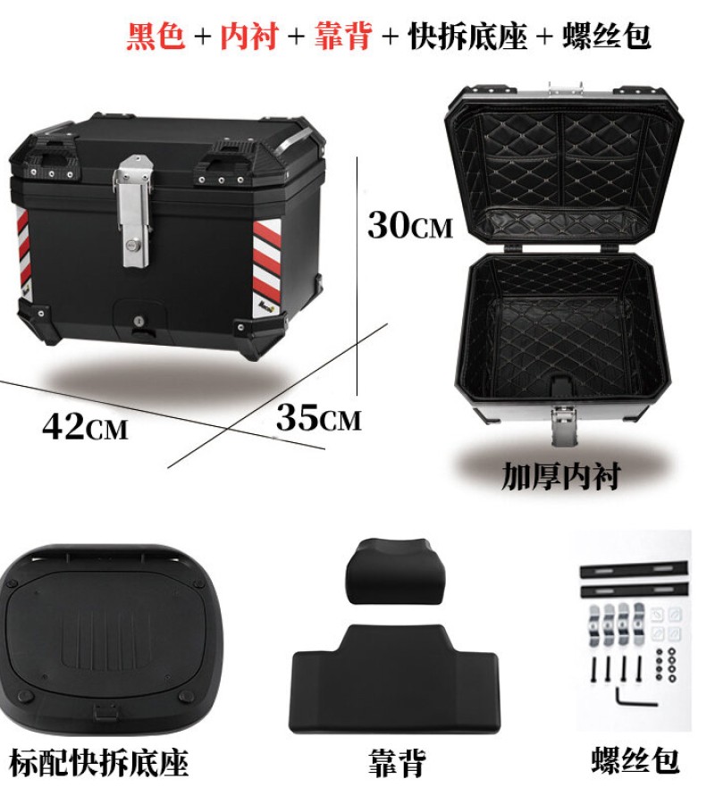 ABS尾箱45l大容量摩托车滑板车电动车工具箱快拆大型非铝合金尾箱