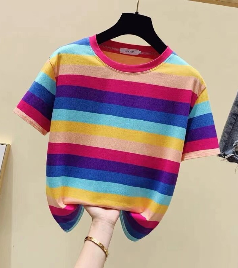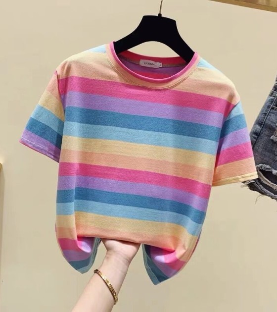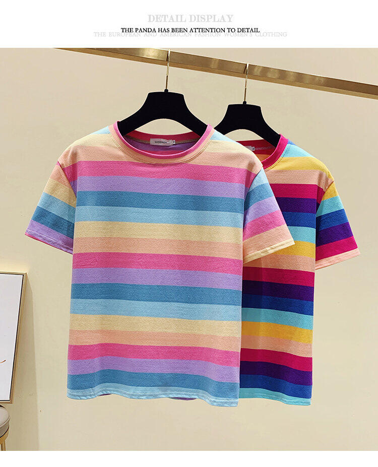 超受欢迎的条纹韩式宽松圆领短袖T恤