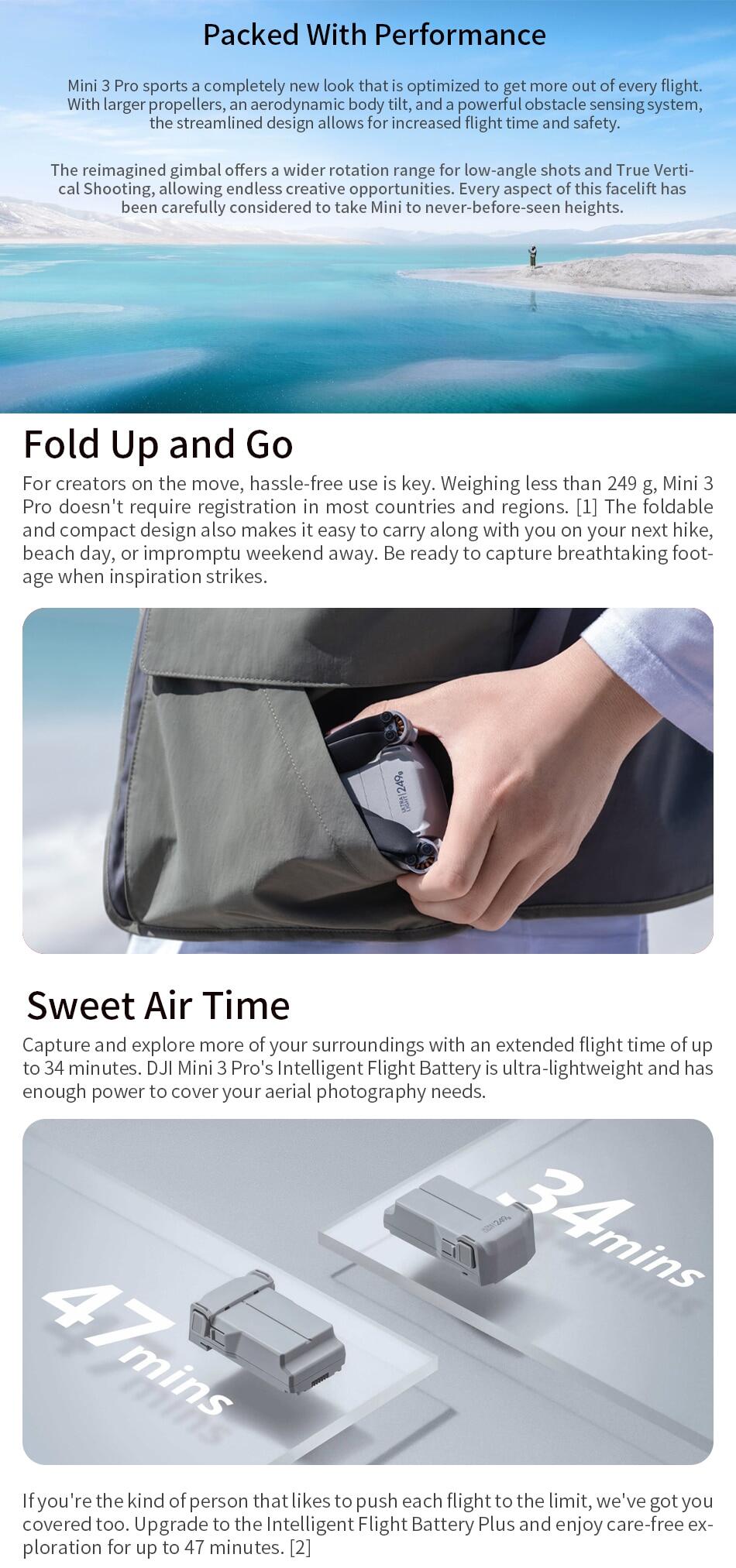 DJI Mini 3 adopts a redesigned structure and form, bringing the following advantages: